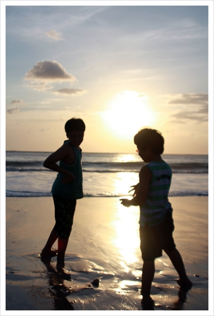 해질녘 짐바란비치에서의 우리 아이들 입니다