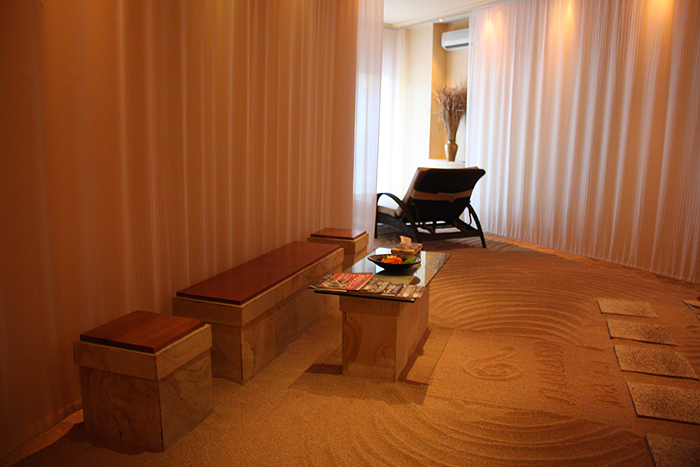 로비를 지나 스파를 받는곳까지의 길은 모두 모래와 대리석으로 이루어져있으며,