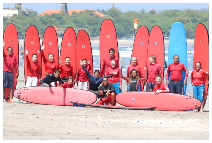 발리 꾸따비치의 해변가앞에 위치한 3층으로 구성된 서핑스쿨은 건물 내 수영장과 이론교율을 배울수 있는 장소가 있으며