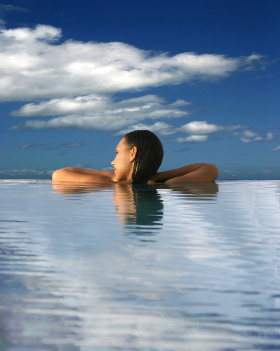 Experience the sensation of plunging into a 100% pure seawater pool heated to 38 degrees with a water station massage and exercise bar. This reduces excess cellulite and improves your muscle tone, flexibility and circulation through a series of aquatic leg exercises. Feel the force of the sea massaging your feet, lower back and shoulders under jet streams and pounding waterfalls or simply relax on an underwater bed as micro jets revive your body with an effervescent massage.