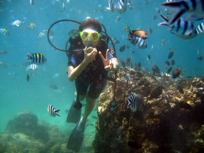 발리에서 다이빙 하기아름다운 바다속 체험