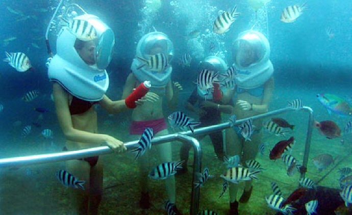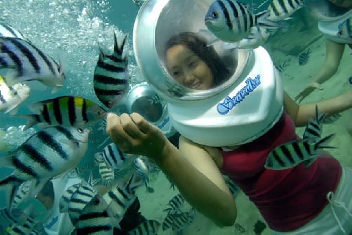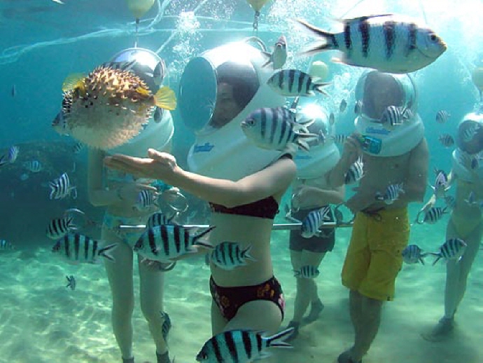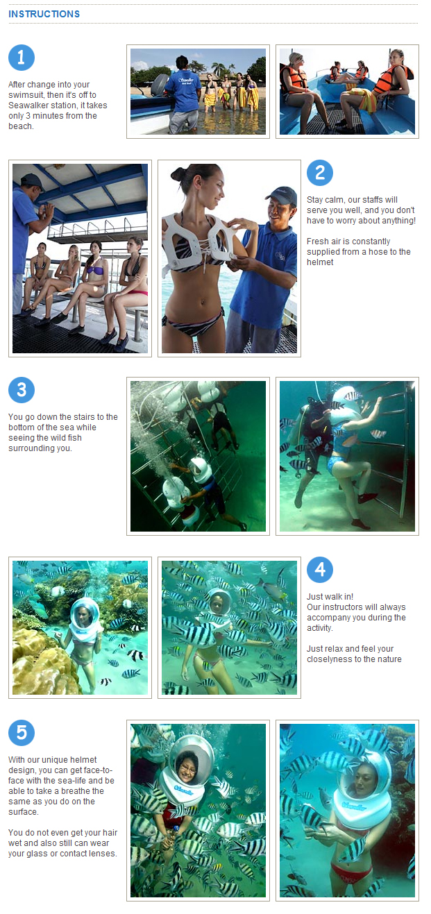 1. 수영복또는 비치웨어로 갈아 입은후 씨워커를 하기위한 장소로 배를 타고 이동합니다.